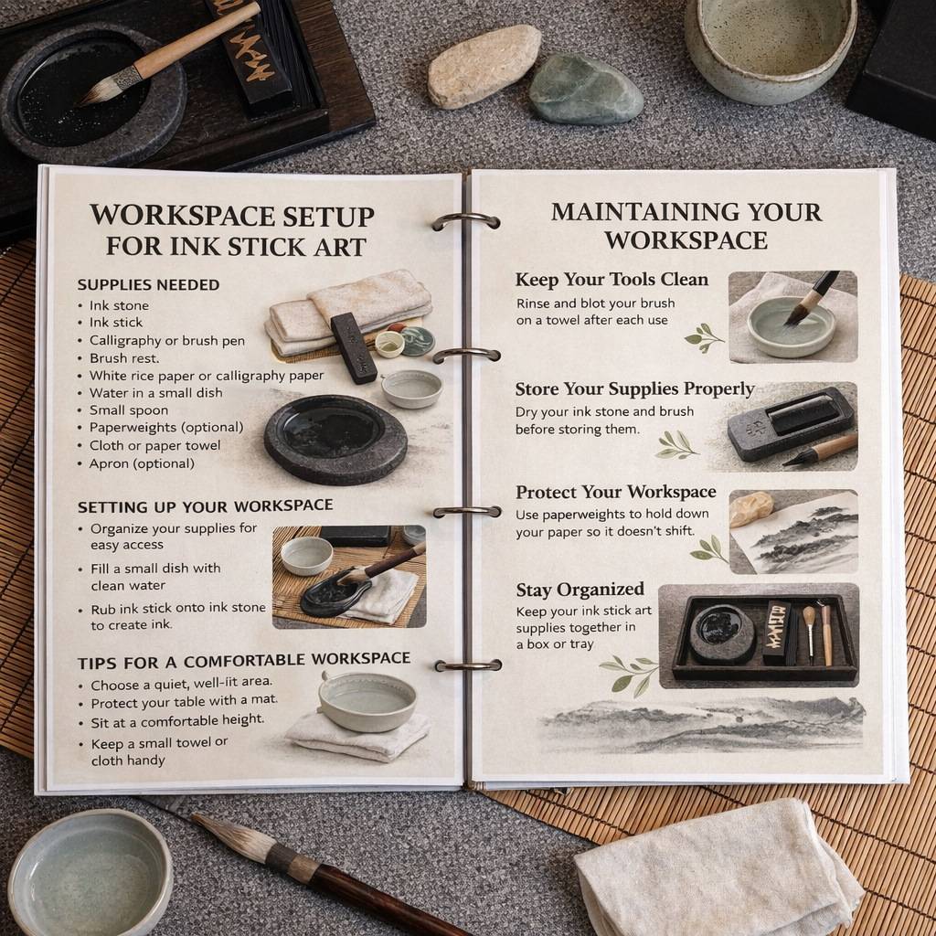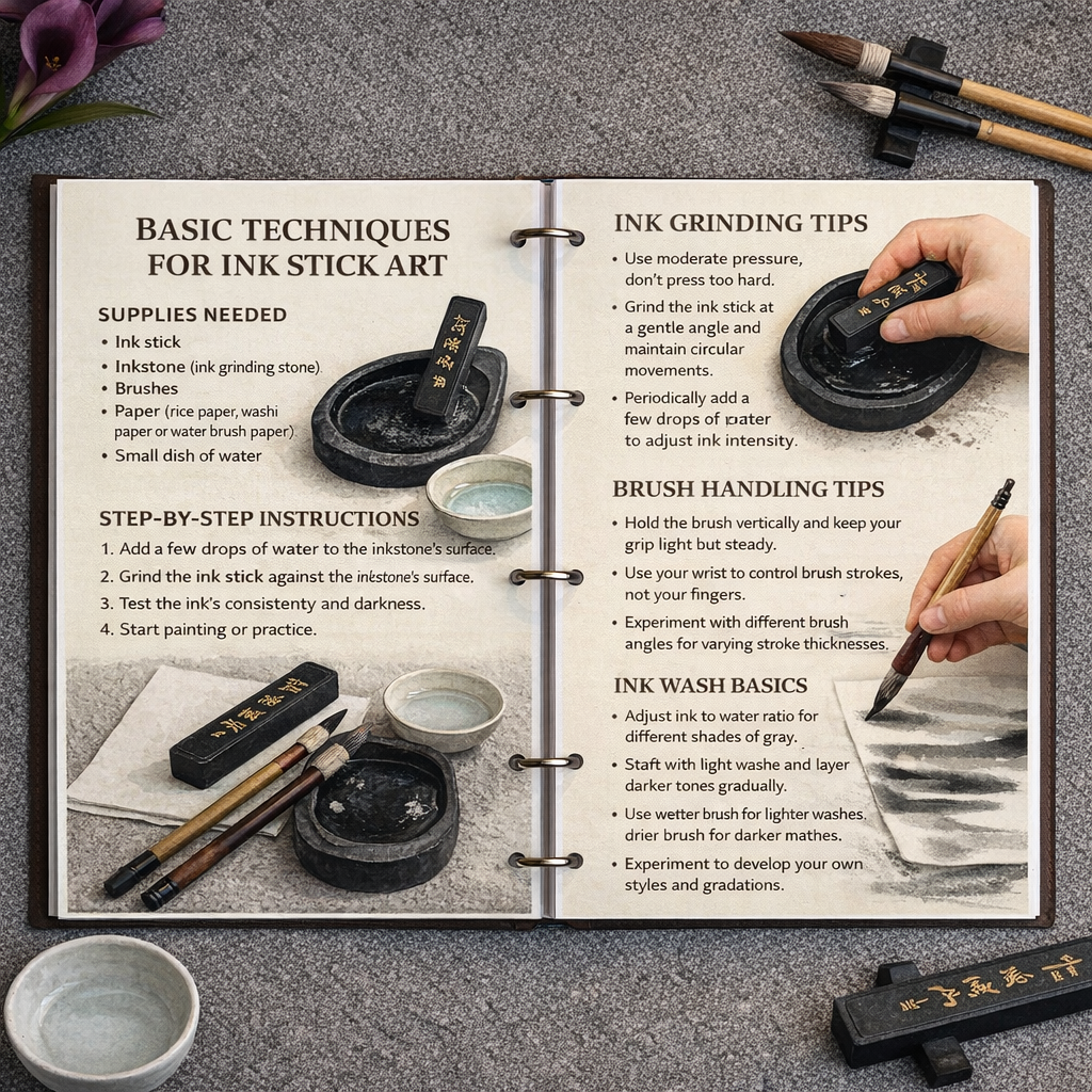 From expressive mark techniques to clear, step-by-step tutorials, this guide gives you everything you need to bring your ink art ideas to life. There’s also space to practise strokes, explore textures, note techniques, and track your creative growth. Just grab your ink stick and paper, and enjoy a calm, rewarding art experience at your own pace.